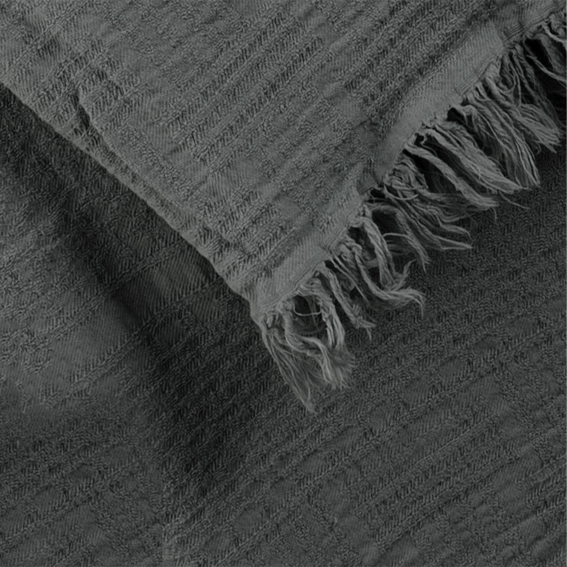 Il est disponible en deux coloris naturels : taupe et souris. Sa dimension de 120 x 150 cm et ses bords en franges lui permettent de se poser élégamment sur une housse de couette blanche.