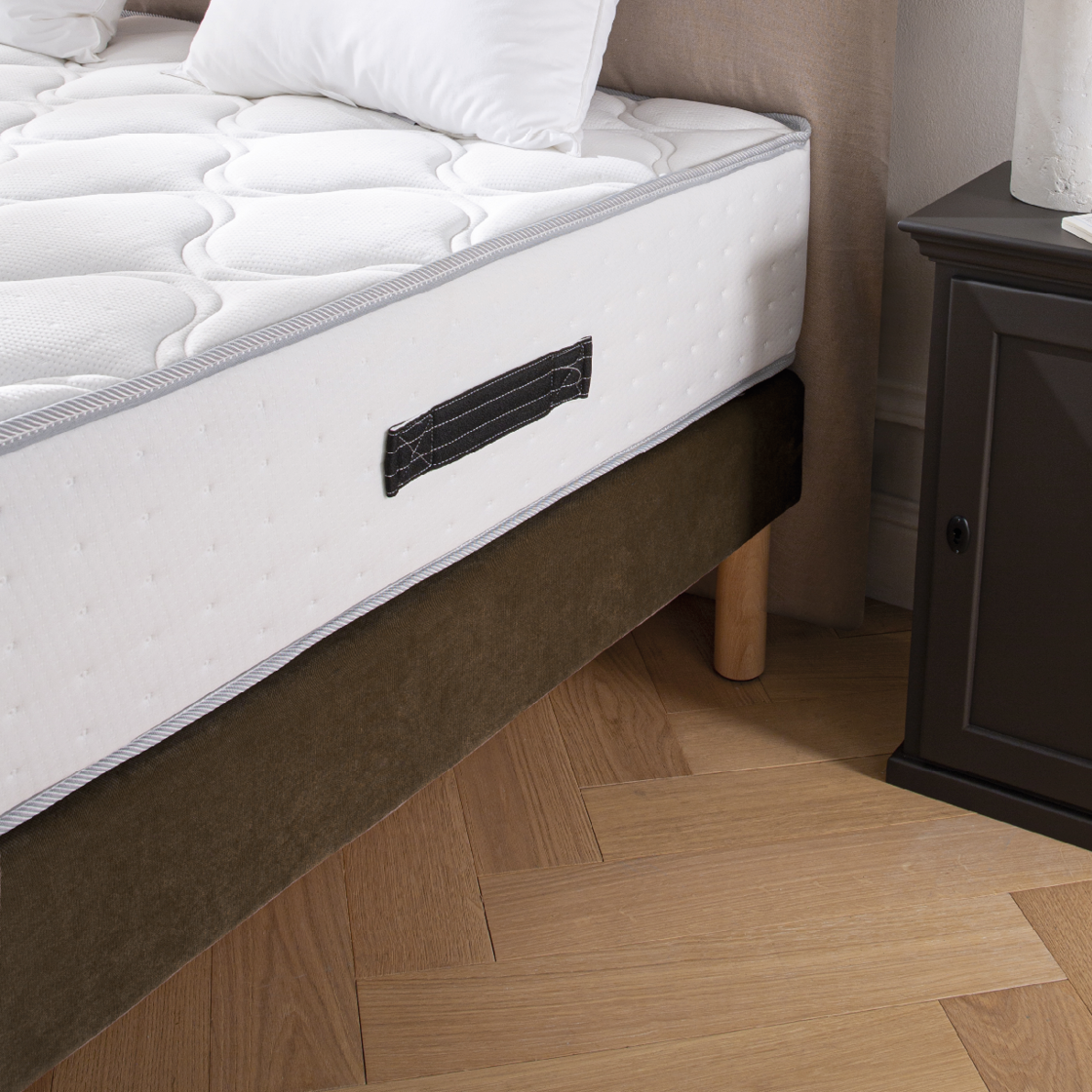 Notre sommier tapissier assure un confort optimal de couchage grâce à ses lattes et son cadre multipli renforcé par une traverse centrale.